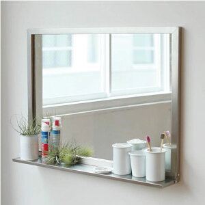 ステンレスのフレームで無駄のないすっきりとしたデザインのミラー。 約10cm幅の棚付きなので、フレグランスやアクセサリーなどちょっとした小物を置いてお使いいただけます。 小さな植物を並べて楽しむのも◎...