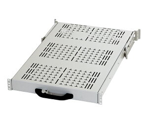 重量用ストッパー付スライド棚 W480×H61.9×D700mm 12.8kg ホワイトグレイ RASSH-700HDWG 1個●19インチマウント型のスライド可能な収納棚です。●ハンドル部のツマミを...