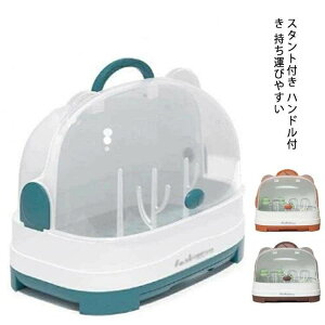 自宅や旅行で持ち運び可能な哺乳瓶ボックス洗った哺乳瓶をラックにかけたまま収納でき、哺乳瓶にホコリが入らないようしっかり乾燥できるのが魅力です取り外せる水切りトレイもつき、洗った哺乳瓶をしっかり乾燥させられます手提げが