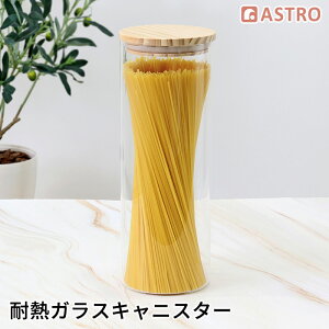 商品名:木蓋 耐熱ガラスキャニスターサイズ:約幅10×奥行10×高さ27.9cm内容:1個容量:約1700ml耐熱温度:120℃耐冷温度:-20℃材質:本体/耐熱ガラス、蓋/天然木、パッキン/シリコーンゴム【特長】●木蓋にシリコーンゴ...