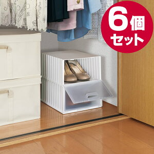 クローゼットで靴を整理普段履かない靴をスッキリと整理できるクローゼット収納靴箱。6個セット。シーズンオフの靴を、キズやホコリから守ります。便利な靴収納積み重ねたまま靴を出し入れできるのでシーズンごとの靴の入れ替えもスム