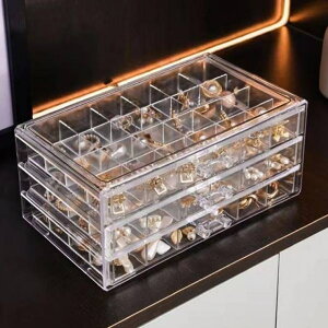 【コメント】おしゃれなジュエリー収納ボックスです。透明なアクリル製のジュエリーボックスは、お気に入りのジュエリーをほこりから守られ、お手入れも簡単です。中身が見えるので、ジュエリーを探す時間大節約。ピアス、イヤリング