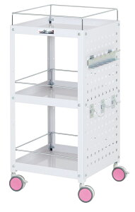 型番WCLP-3-P サイズ(mm)W400×D400×H810 仕様キャスター:50φゴム車(自在ストッパー付2個・自在2個)、ネジ径:M12×P1.25、色:パールピンク