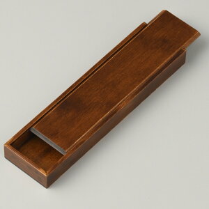 新製品の箸箱です。 関東地方で使われる“家族入れ”です。 24cmの箸が5膳程度入ります。 従来の箸箱は代用漆(カシュー)塗装の為、 箸箱の中に独特の匂いがこもりました。 新製品では、全体を漆塗にすることで匂いを無くしました。 ス