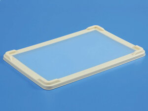 サンコーばんじゅう:製菓、製パン用コンテナのスタンダード製品です。 外寸:584×399×35mm 材質:PP カラー:クリーム