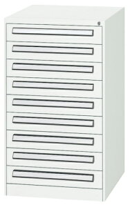 【仕様】●型番:B-38●間口(mm):349 ●奥行(mm):235 ●高さ(mm):389 ●最大積載量(kg/台):48 ●引出し:B−13列8段 ●引出し色:透明●本体色:ネオグレー●本体:スチール●各引出しに仕切板・見出しカ...