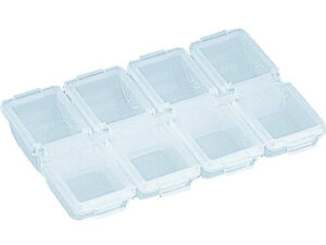 【仕様】●型番:TJC-8●色:クリア●外形寸法(mm)間口:86●外形寸法(mm)奥行:64●外形寸法(mm)高さ:13●コマ数:8●1コマ有効内寸(mm):15×23×10●固定仕切タイプ●仕切あり●樹脂製●本体:ポリプロピレン(...