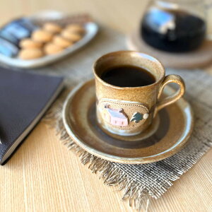 レトロかわいい信楽焼コーヒーカップとソーサーのセット
