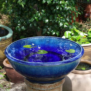 品 番 su-0243 金魚鉢、めだか鉢にお勧めの水鉢 品 名 信楽焼 ブルーガラス水鉢 【送料無料】 浮き球2個付き!(絵柄は当店にお任せください) サイズ・重量 直径590×高さ210mm(外寸)...