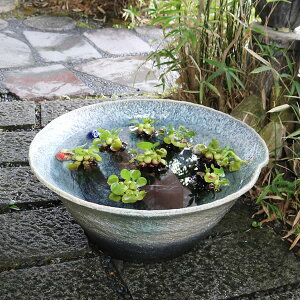 青ガラス片口水鉢[信楽焼 陶器 置物 金魚鉢 めだか鉢 水鉢 睡蓮鉢] 1250年の伝統の匠の技が作り出す信楽焼の水鉢は 表情豊かな信楽焼の土の質感は、庭園に調和し空間を彩ります...