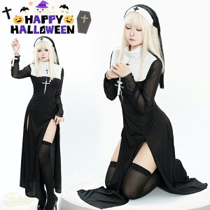 ワンピース ハロウィン 仮装 大人 女性 シスター コスプレ セクシー 可愛い 修道女 聖女 牧師 宣教師 修道服 教会 黒 大きいサイズ コスプレ