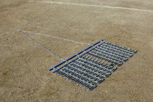 商品情報[ 商品詳細 ]●運賃ランク 9●主材スチール製、ユニクロメッキ仕上げ、スチールワイヤー(4mm)●金網幅約100×長さ約100cm×2連式、チェーン長さ約254cm●重さ32kG●連結金具付×1●グランドの地ならし以外には使...