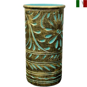 サイズ ◇φ30cm 高さ45cm 口内寸:φ17cm 素材 ◇陶器 ハンドメイド ◇ハンドメイドのイタリア製傘立て。グラフィートと呼ばれる手法で柄を彫っています。 ◇防水にはなっておりませんので中に水を入れてのご