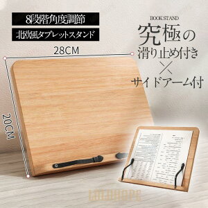 本、スマホ、タブレット、楽譜などを立てる木製スタンド!姿勢矯正や近視の予防に役立つ間違いなし。5段階の角度調節が可能でお好みに合わせて使用できます。本のページをしっかり押さえるアーム付き。 サイズW28×H20cm W33.5xH24...