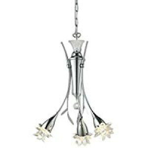 ◆ガラス細工のグローブは職人により丁寧につくられています。調光時、花弁にろうそくのような、ぬくもりあるあかりが灯ります。白熱球60W×3灯相当ランプ:LED×3●鋼・クロムメッキ●ガラス・透明●高-515 幅-φ465 全長-2500...