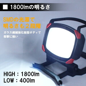 【特徴】・作業やレジャーや災害時に幅広く使える投光器です。・内蔵充電池でもAC電源からの給電でも使用可能です。・面発光(COB)LEDで広範囲をムラなく照射できます。・本体180度回転可能です。・明るさ3段階調光可能です...