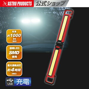 ■商品説明:最大1000lmの充電式の畳み式ワークライトです。本体は180°展開し、折り畳んだ状態でも、展開した状態でも使用できます。スイッチ操作で、両面点灯とそれぞれ片面のみの点灯を切り替え、設置方法や作業に合わせて使い分けが