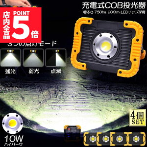 【10W・3つの点灯モード】10W COBチップを搭載している投光器です。暗いところで作業は楽になれます。三つ点灯のモードが自由切り替え可能です。電源ボタンを押すと強光、弱光、点滅のモードを切替できます...