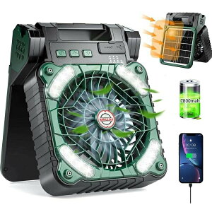 梱包サイズ:24.7 x 18.8 x 8.8 cm機能:軽量, タイマー, LEDライ, ソーラー充電電池種別:リチウムイオ梱包重量:1.03kgバッテリー容量:7800mah。充電方法:USB充電/ソーラー充電。風量:4段階調整。...
