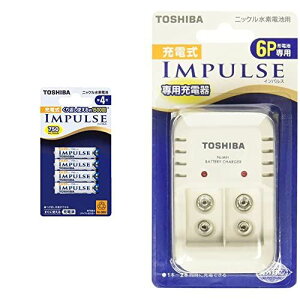 電池容量:min.750mAh。公称電圧(V):1.2。外形寸法(1本)(mm):直径(幅)10.5×総高44.5。本体質量(g):約12。東芝 ニッケル水素電池「充電式IMPULSE」 6P形専用充電器。LEDで電池1本ずつの充電状態を。