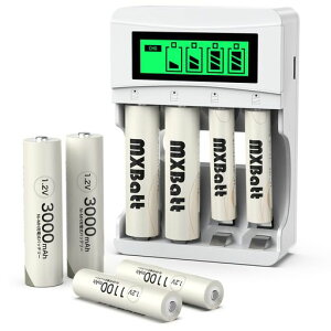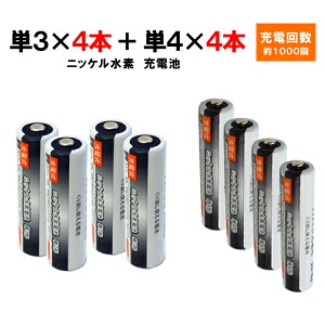 【仕様】商品内容:単3充電池4個パック、単4充電池4個パック、LED充電器*1、充電ケーブル*1、充電器取扱説明書*1。電池電圧:1.2V。容量:3000mAh1100mAh。タイプ:ニッケル水素電池...