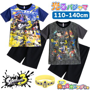 スプラトゥーン3 勇気がでる!光るパジャマ ボーイズパジャマ 暗いところで光る 光る勇気リング付き 男の子 半袖 薄くて軽い 快適Tシャツ素材 天竺 蓄光プリント 110 120 130 140 ネイビー...