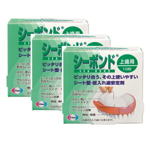 シーボンド 上歯用 18枚 海草から抽出 総入れ歯安定剤 シート状 入れ歯 ピッタリ密着 1日中接着力が持続 やわらかいクッション 歯ぐき 無味無臭 使い心地も快適 まとめ買い 3箱セット