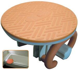 回転して体の向きを楽に変えられます。 座面はクッション性もよく肌になじむポリウレタンを採用。 大きめな回転盤なので安定感があり回転時も安心して使えます。 本体には金属を使用していないため浴槽内など水回りでの使用に最適です