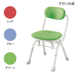 体の安定を保ったり持ち運びに便利な持ち手付き ●座面の高さが調節可能 ●ゴムキャップ付きで床にぴったりとして滑りにくい 【材質】座面・背もたれ・調節部樹脂:PE フレーム部:アルミニウム パイプ部樹脂キャップ: