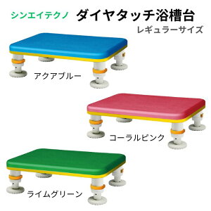 製品仕様 商品名 ダイヤタッチ浴槽台 レギュラーサイズ 重量/サイズ ○サイズ:幅30×奥行40×高さ10〜15cm○最大使用者体重:100kg 素材 材質○天板:ゴム(防カビ加工)、ポリプロピレン○脚ゴム:エラストマ○フレーム・パイ...