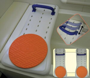グリップ:ステンレス・発泡ウレタン ●取り付け可能浴槽内寸法/42〜62cm ・カーブ浴槽にも対応。 ・円座が回転するので、利用者も介助者も大