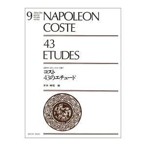 全音楽譜出版社ギターエチュードシリーズ 9 コスト 43のエチュード【楽譜】ソルの教本に使われたコストのエチュードを骨子とし、学習上、必要と思われる他のコストの作品も加えてまとめたエチュード集。やさしいものから中級レベルで演