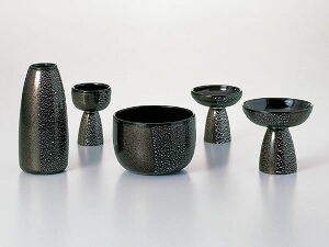 錫100%の無垢と金箔を華やかに組み合わせました。 三角面から円に変形していく形が個性的です。 ■サイズ(mm): ・花 立 Φ52×H97 ・香 炉 Φ100×H60 ・火 立 Φ70×H45 ・茶湯器 Φ55×H50 ・仏飯器 Φ...