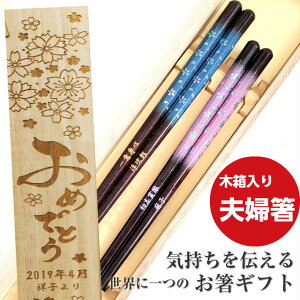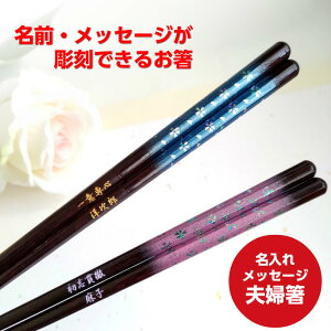 エレガントな桜。グラデーションの美しいおしゃれなお箸。きらめくラメもきれいです。・結婚 新築 金婚 銀婚 などお祝いに。・名入れ、メッセージ無料です!家族や友人へ贈り物に人気の商品です。・サイズ:23cm(紫)/21cm(赤) ・材質:天