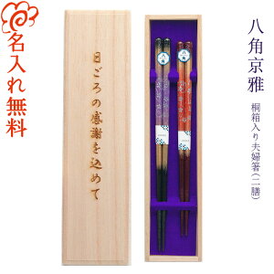 。 夫婦箸高級桐箱入り2本ペアセット。 食器洗い乾燥機対応なのでお手入れカンタン! 鮮やかな京雅の塗りが素敵。 日本製箸・滑り止め付・持ちやすい八角。 <...