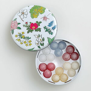 手のひらサイズのミニ缶に詰め合わせました。お砂糖の薄い膜で香りよいお酒を包み込んだボンボンです。ワイン、ブランデー、うめ酒、ペパーミント、コアントロー、ハスカップの6種類各3個入り。缶の直径:7cm。