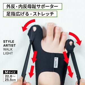 【外反母趾・内反小趾サポーター】【左右セット】足の甲には弾力ゴムベルト二枚で加圧し、中足関節を適度に締め付けることで、自然に指が開く構造です。母趾と小趾を同時にサポートします。側面に装着したアジャスターフックで...