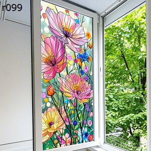 カラフルなステンドグラス調の窓ガラスフィルム。【幅30cm−60cm×長さ80cm−120cm】貼り方は窓ガラスに水を吹き付けてフィルムを貼るだけです。さらに剥がす事も簡単にでき、賃貸でも安心して貼れます...