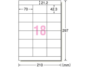 【商品説明】レーザープリンタでの印字適性に優れたラベルシールです。宛名用や表示用のラベルが手軽にキレイに作れます。【仕様】●仕様:18面ホワイト●面付:3列×6段●シートサイズ:A4(210×297mm)●1片のサイズ:70×42.3...