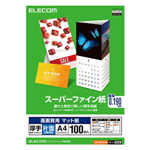 エレコム EJK-SAPA4100 高画質用スーパーファイン紙(A4、厚手、片面100枚)●細かい部分までくっきり再現できる高画質用スーパーファイン紙です。●印刷画像を鮮やかに再現するため、白色度の高...