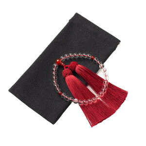 数珠 女性用 葬儀 念珠 紅瑪瑙 べにめのう 数珠入れ 36玉 手作り念珠 葬式 墓参り 法事 念誦 全ての宗派に使用可能(主珠:有色水晶, 房色:ボルドー色) 念珠の材料:数珠は天然水晶で作られています...