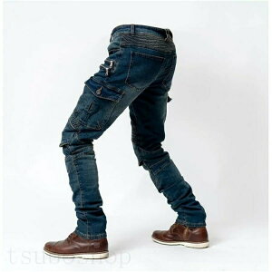 超高強度 超高耐磨素材で、万が一の転倒時にもアスファルトからのスレをガードできます。両膝プロテクター付き、取り外し可能です。長年穿き古したような風合いを再現したジーンズ、バイク用のパンツにも日常の様々な履きにも対応して