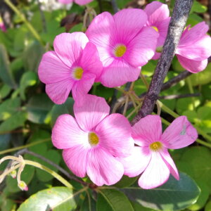 ●品種特性 花が少ない秋口から寒い冬の間に、オキザリス桃の輝きはピンクの花を満開に咲かせ楽しませてくれます。生垣の隙間に生い茂るカタバミ科カタバミ属の球根性の宿根草です。日当たりがよい場所を好みます。名前につくイモ(芋