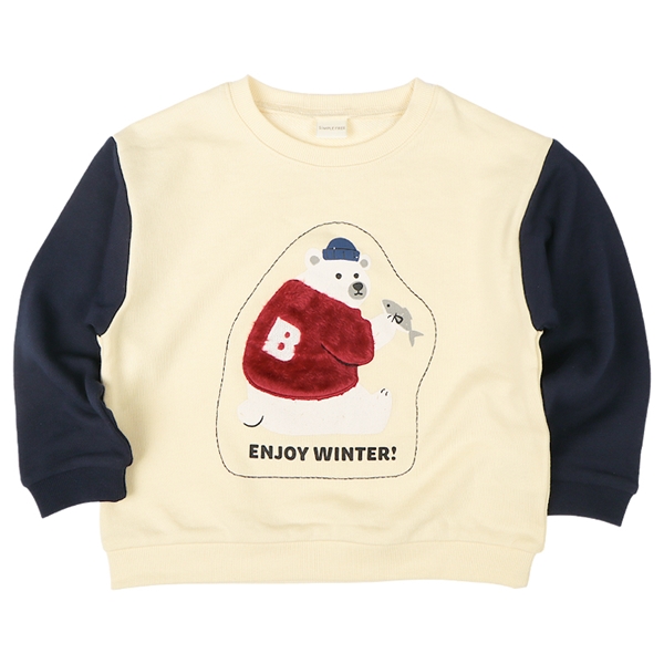 ふわふわフリースのお洋服を着たアニマルモチーフが目を惹く長袖トレーナーです。。裏毛素材で寒い冬でも大活躍。モチーフは、クマと犬との2種類からお選びいただけます。通園通学からお出かけまで幅広いシーンにおすすめです。素材 本体 綿60%ポ...