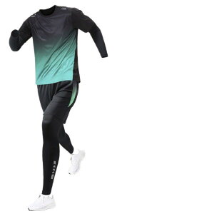スポーツウェア メンズ レディース 上下セット 秋冬用 速乾性 トレーニングウェア ランニングウェア サイクルウェア 9分丈パンツ 長袖 ラウンドネック ジャージ ポリエステル 伸縮性 通気性 吸湿性 グレー グリーン...