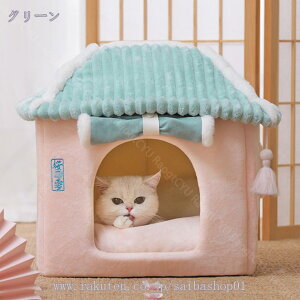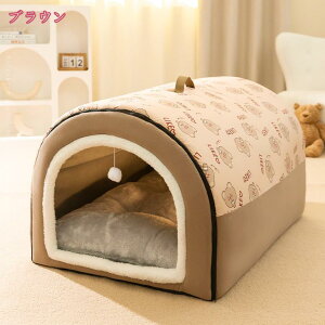 表地素材:スエード内部素材:スエード詰め物素材:PP綿サイズ:S(約35*35*35cm) 素材:スエード 適用対象:全種類の猫、小型犬、中型犬などの動物対応できます。【保温防寒設計】 三角屋根型猫ベッドの入口の開口部が小さく設計されてお