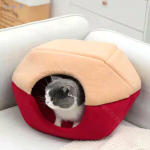 表地素材:スエード内部素材:スエード詰め物素材:PP綿サイズ :M(約48*40*40cm) L(約52*43*43cm) 素材:スエード 適用対象:全種類の猫、小型犬、中型犬などの動物対応できます。【保温防寒設計】 三角屋根型猫ベッ...