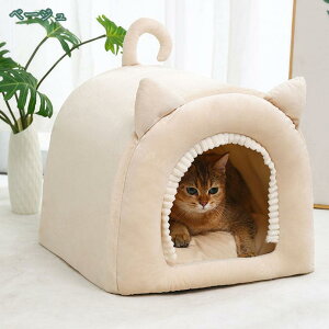 表地素材:スエード内部素材:スエード詰め物素材:PP綿サイズ:S(約39*32*34cm) 素材:スエード 適用対象:全種類の猫、小型犬、中型犬などの動物対応できます。【保温防寒設計】 三角屋根型猫ベッドの入口の開口部が小さく設計されてお