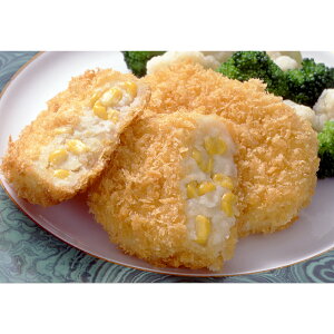 スイートコーンがたっぷり入ったコロッケです。 北海道産小麦の自家製パン粉使用。揚げ: 175〜180℃ 約5分30秒