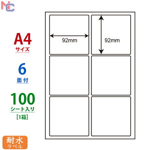 ホワイトマットフィルムラベル シートサイズ 210mm×297mm(A4) ラベルサイズ 92.0mm×92.0mm 面付 6面付 入数 1ケース 100シート入り ※ラベル個数:600片 (100シート...